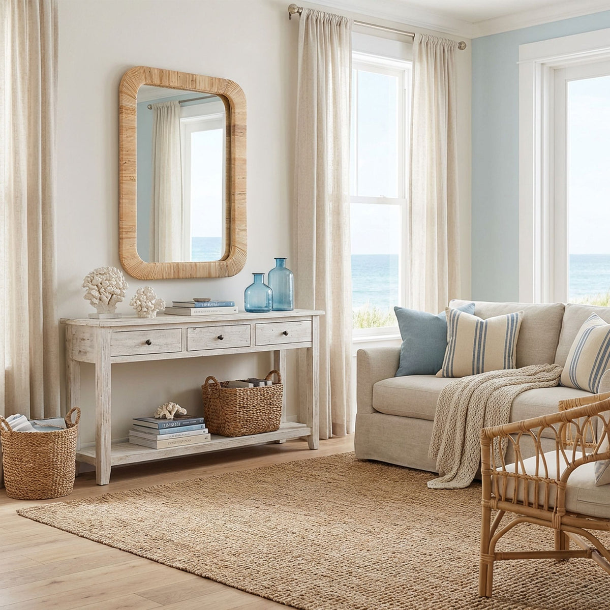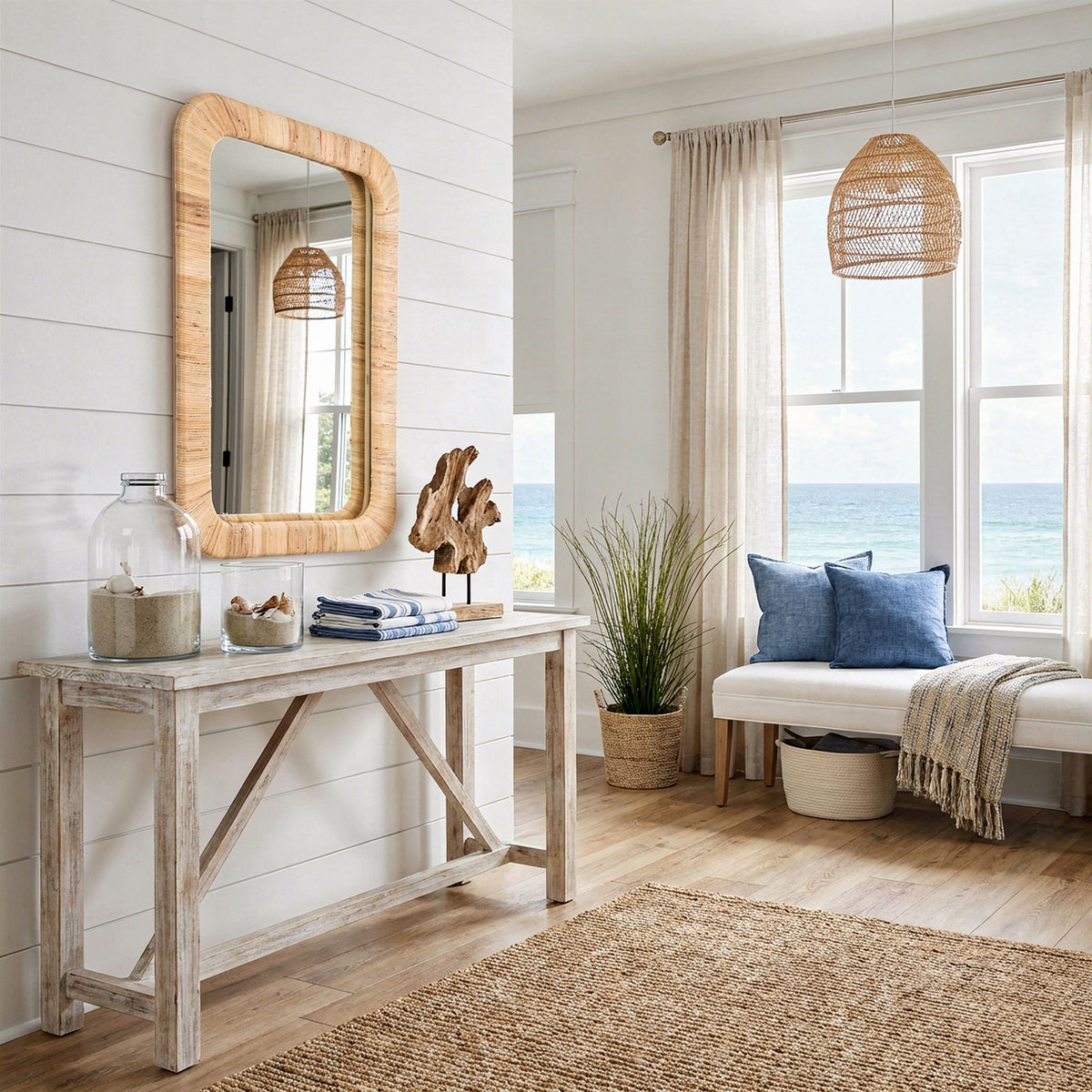 Step into a world where bohemian charm meets coastal elegance. Introducing our Rectangular Rattan Wall Mirror, a masterpiece designed to elevate any space it graces. Whether you're a lover of boho farmhouse aesthetics or have a penchant for natural coastal vibes, this mirror is the perfect blend of both worlds.