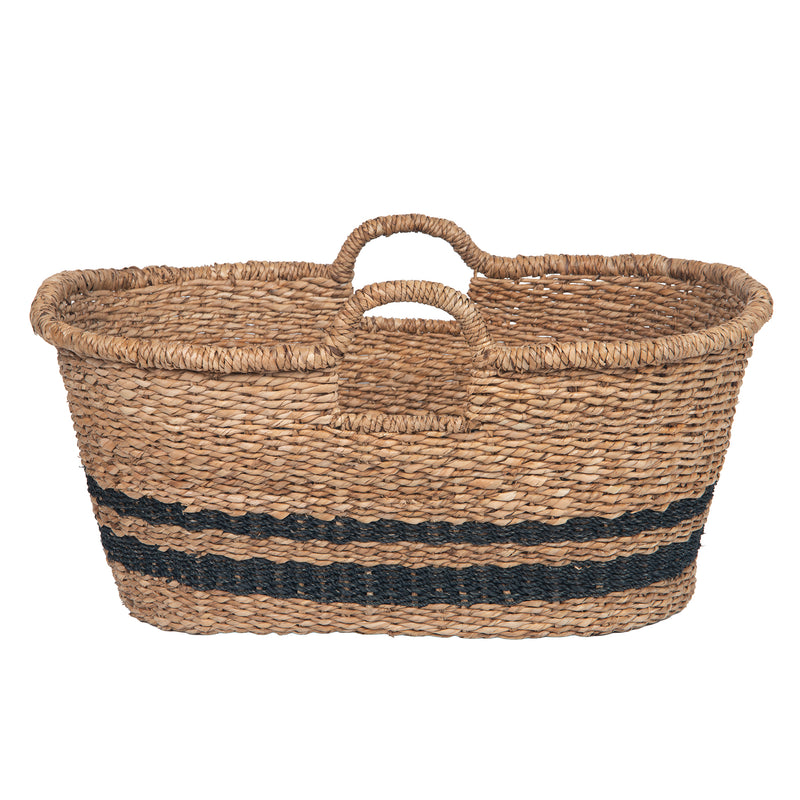 The Oval Abaca Moses Striped Storage Basket with Handles is where natural texture meets everyday function. Handwoven by skilled artisans from abaca and kallas, this handcrafted basket has a soft, organic feel while being sturdy enough for daily use. The striped weave of natural and black fibers makes it not just useful, but a beautiful boho decorative storage basket that enhances any room. Lightweight with a 10-gallon capacity, it’s just the right size for blankets, toys, or cushions. With convenient side handles, this oval fiber storage basket is as portable as it is stylish, offering a versatile natural storage solution for your home.