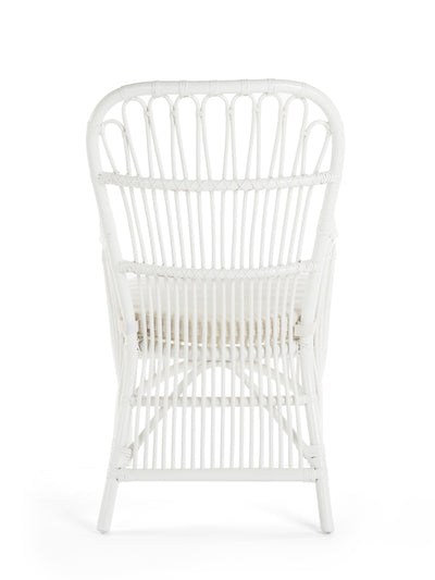 Pair this beautiful Rattan Loop Armchair and Seat Cushion with the Rattan Loop Side Chair for an elegant dining experience. Bring a touch of tropical paradise to your home with this fresh modern design. The white color allows the design to take center stage.