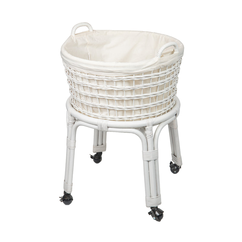 Move your laundry with ease using this raised laundry basket on wheels. Wheel it from room to room and load clothes into your washing machine without bending over. The rolling wicker laundry basket lifts effortlessly off the rattan stand when needed, while the removable cotton liner keeps laundry protected.